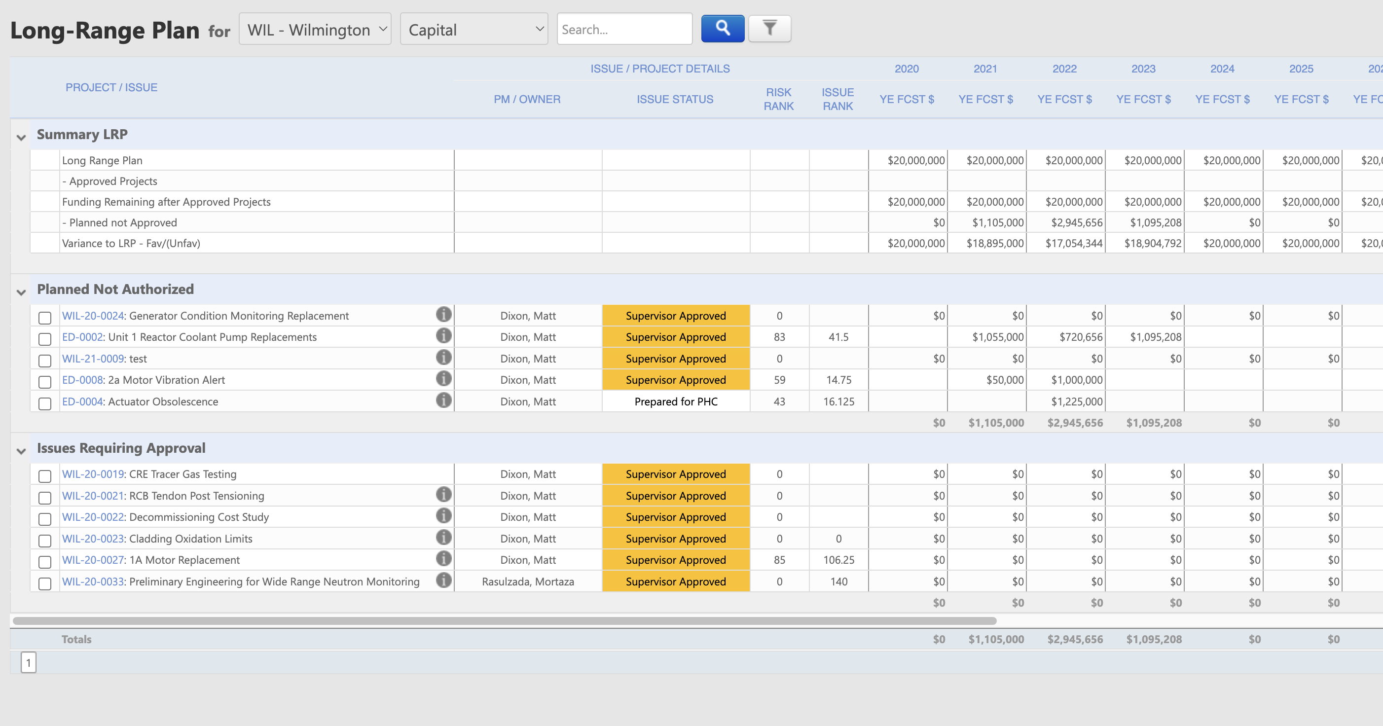 Whether you are planning for a 5-10 year window or for the end-of-life of equipment 40+ years away, our Long Range Planning tool has the capability to integrate relevant data and create accurate long-range plans. By combining actual project costs with forecasts and potential project values, organizations can get a complete and accurate view of spending and can make informed decisions about which projects to prioritize.