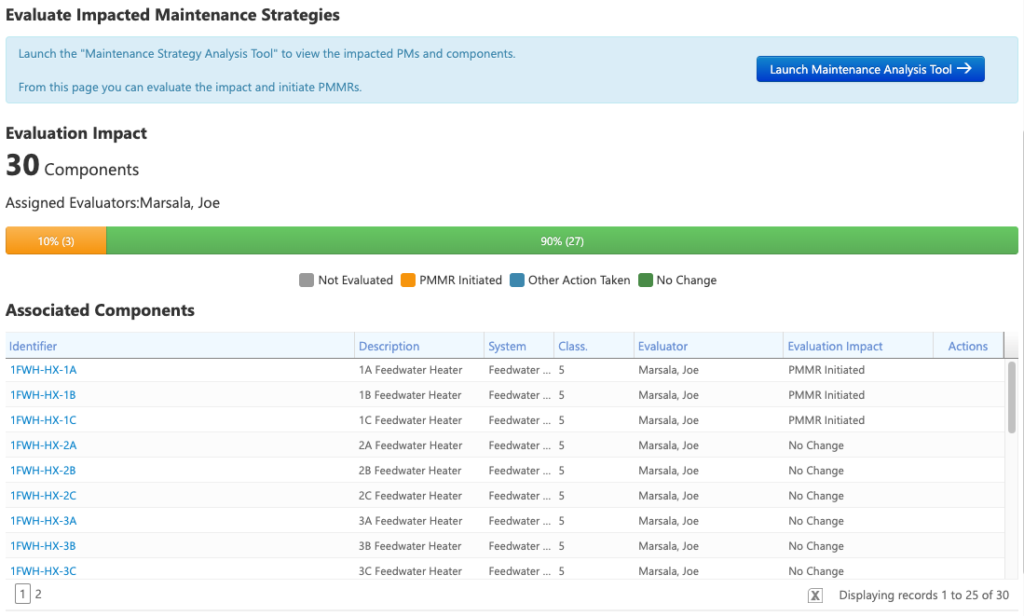 It’s common to use craft feedback in adjusting the maintenance strategy for a component, but this process is usually very inefficient – it’s difficult to determine what is valid and what further action is needed. With ENGAGE: Strategy, maintenance strategy evaluations can be automatically created based on any number of inputs – changes to component classifications, templates, or completed work order fields and feedback like the ‘as found’ condition code. This allows for more rapid improvement which reduces maintenance costs faster.