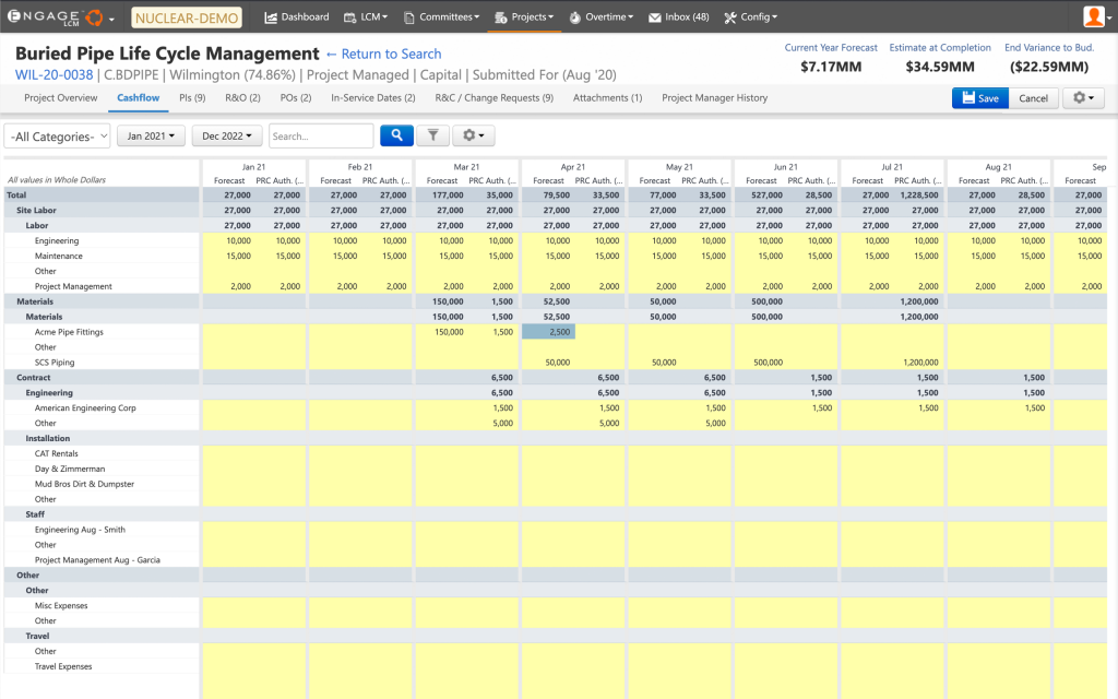 - See pending or upcoming projects along with inflight projects (requires ENGAGE: LCM)